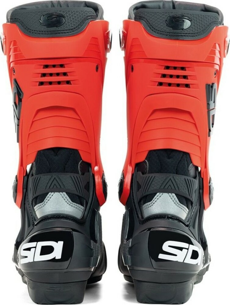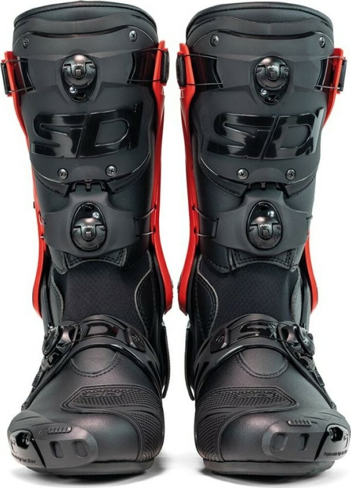 Rex este o cizmă de curse care nu face compromisuri în ceea ce privește siguranța. Fiecare componentă a fost concepută pentru a oferi protecție maximă, fiind purtată de piloții noștri profesioniști. Rex încorporează protectoare din TPU de înaltă calitate și un exoschelet din nailon ranforsat cu fibră de sticlă pentru un suport esențial. Sistemul de închidere cu rotiță din rășină de înaltă densitate este proiectat pentru a oferi o potrivire perfectă, permițând ajustarea cizmei pe ambele părți. Acesta este poziționat strategic pe exteriorul zonelor de contact, integrat în structura cizmei pentru a oferi protecție împotriva impactului. Designul anti-alunecare lateral asigură o experiență de condus sigură.