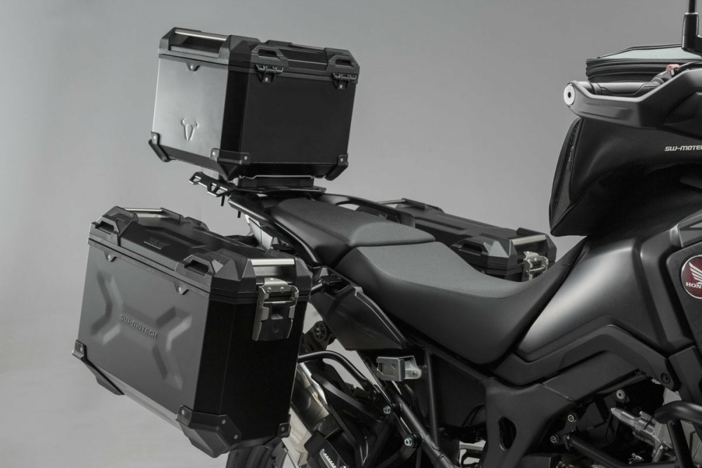Setul de cutii Adventure include suportul lateral PRO potrivit si suportul corespunzator ADVENTURE-RACK. Aceste componente se fixeaza la punctele de atasare specifice fiecarei motociclete, oferind suport solid pentru cutiile din aluminiu TRAX ADV. Acest set reprezinta o solutie completa si lipsita de griji pentru orice calatorie. Cu cutia premium din aluminiu TRAX ADV rezistenta la apa si praf, doua cutii laterale si o cutie de bagaj, bagajele beneficiaza de cea mai buna protectie posibila. Dezvoltarea specifica fiecarei motociclete a suportului lateral PRO detasabil si a ADVENTURE-RACK asigura o potrivire optima si o prindere sigura pentru cutiile din aluminiu. Cutiile robuste din aluminiu TRAX ADV impresioneaza prin stabilitatea lor, impermeabilitatea la apa si praf, aspectul elegant, caracteristicile bine gandite si gama larga de accesorii disponibile. Pentru mai mult spatiu de depozitare, acest set Adventure include doua genti de extensie TRAX M L, care se fixeaza pe cutiile laterale si sunt rezistente la apa, permitand accesul rapid la continut. Pachetul include: 1 x TRAX ADV Top case, 38,00 l 1 x TRAX ADV L Aluminium case, 45,00 l, stanga 1 x TRAX ADV M Aluminium case, 37,00 l, dreapta 2 x Suport lateral PRO 2 x Adaptoare pentru suportii laterali 2 x Protectie antifurt pentru suportii lateral 1 x Suport top-case Adventure Rack 1 x Adaptoare pentru suportul Adventure Rack 3 x Seturi de chei Trax 2 x Genti TRAX WP M L 6 x Limitatoare de capac 3 x Genti interne 1 x Unelte multiple Instructiuni de montaj Material de montaj