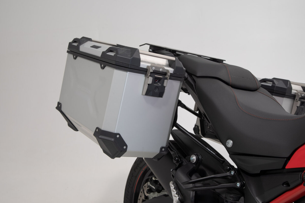 Setul de cutii Adventure include suportul lateral PRO potrivit si suportul corespunzator ADVENTURE-RACK. Aceste componente se fixeaza la punctele de atasare specifice fiecarei motociclete, oferind suport solid pentru cutiile din aluminiu TRAX ADV. Acest set reprezinta o solutie completa si lipsita de griji pentru orice calatorie. Cu cutia premium din aluminiu TRAX ADV rezistenta la apa si praf, doua cutii laterale si o cutie de bagaj, bagajele beneficiaza de cea mai buna protectie posibila. Dezvoltarea specifica fiecarei motociclete a suportului lateral PRO detasabil si a ADVENTURE-RACK asigura o potrivire optima si o prindere sigura pentru cutiile din aluminiu. Cutiile robuste din aluminiu TRAX ADV impresioneaza prin stabilitatea lor, impermeabilitatea la apa si praf, aspectul elegant, caracteristicile bine gandite si gama larga de accesorii disponibile. Pentru mai mult spatiu de depozitare, acest set Adventure include doua genti de extensie TRAX M L, care se fixeaza pe cutiile laterale si sunt rezistente la apa, permitand accesul rapid la continut. Pachetul include: 1 x TRAX ADV Top case, 38,00 l 1 x TRAX ADV L Aluminium case, 45,00 l, stanga 1 x TRAX ADV L Aluminium case, 45,00 l, dreapta 2 x Suport lateral PRO 2 x Adaptoare pentru suportii laterali 2 x Protectie antifurt pentru suportii lateral 1 x Suport top-case Adventure Rack 1 x Adaptoare pentru suportul Adventure Rack 3 x Seturi de chei Trax 2 x Genti TRAX WP M L 6 x Limitatoare de capac 3 x Genti interne 1 x Unelte multiple Instructiuni de montaj Material de montaj