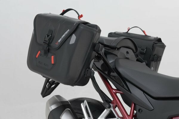 Sistem SysBag WP M S Acest sistem contine suporturile laterale SLC asortate, o geanta SysBag WP S si o geanta SysBag WP M. Cu sistemul SysBag WP veti fi echipat perfect pentru urmatoarea calatorie, iar lucrurile dvs. vor ramane uscate in orice conditii meteorologice. Gentile SysBag WP sunt insotitorii de incredere pentru fiecare aventura, pentru fiecare aplicatie si pentru fiecare motocicleta exista un model adecvat. Multumita selectiei atente a materialelor si prelucrarii elaborate, toate cele trei dimensiuni S, M si L sunt complet impermeabile si extrem de solide. Au o inchidere cu rulou si un capac suprapus. Buzunarul interior este detasabil, iar doua despartitoare pozitionabile liber cu velcro faciliteaza impartirea bagajelor. Include: 1 x Suport lateral SLC stanga 1 x Suport lateral SLC dreapta 1 x Placa adaptor stanga pentru SysBag WP M 1 x Placa adaptor dreapta pentru SysBag WP S 1 x SysBag WP M 1 x SysBag WP S Instructiuni de montare Material de montare Detalii Greutate totala: aprox. 8,2 kg Volum total: 39 litri