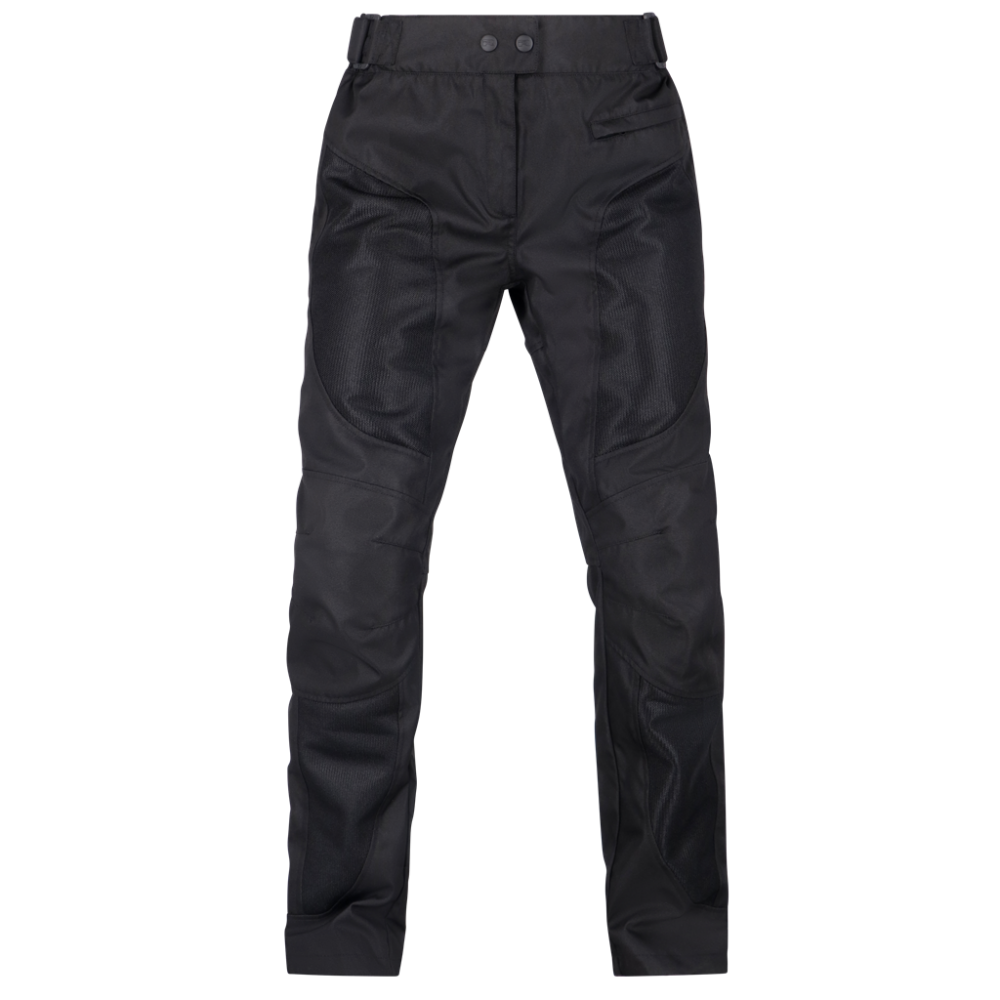 Pantaloni Dama Textil Richa Airsummer Pantalonii Airsummer de la Richa sunt conceputi pentru cele mai fierbinti zile de vara. Sunt confectionati aproape in intregime dintr-un strat exterior din mesh ceea ce inseamna ca pantalonii au o aerisire placuta. Acesti pantaloni din clasa de protectie A sunt echipati standard cu protectii pentru genunchi D3O reg;. Exista, de asemenea, cusaturi de siguranta in zonele cu risc ridicat. Datorita fermoarului scurt de conectare, geaca Airsummer asortata poate fi purtata confortabil peste pantaloni. Caracteristici: Sistem Airvent (AVS): Ventilatie fixa in zonele cheie Captuseala din plasa(mesh) moale 1 buzunar exterior Fermoar de conectare (scurt) Specificatii: Protectii pentru genunchi D3O reg; ( cu posibilitatea de schimbare in protectii D3O reg; Ghost sau L2) Cusaturi de siguranta in zonele cu risc ridicat Pregatit pentru protectori de sold D3O reg; (se vand separat) Imbracaminte de protectie pentru motociclisti, clasa de protectie A (EN 17092-4:2020) Culoarea neagra disponibila si in marimi scurte si mari Material Material exterior: 100% poliester Captuseala interioara: 100% poliester