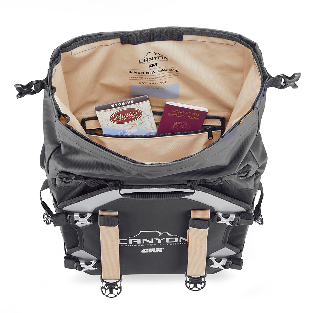 Geanta laterala Givi impermeabila cu sistem de fixare MONOKEY CAM-SIDE, 30 litri Geanta laterala impermeabila de 30 litri, cu sistem de prindere MONOKEY CAM-SIDE Geanta laterala GRT725 Canyon este conceputa pentru pasionatii de off-road care nu vor sa faca compromisuri in privinta confortului sau securitatii bagajelor, chiar si pe teren accidentat. Se adapteaza perfect motocicletelor enduro si maxi enduro si este echipata cu sistemul de prindere MONOKEY CAM-SIDE. Aceasta poate fi atasata de suporturile tubulare PL_CAM pentru genti laterale, disponibile pentru majoritatea modelelor de motociclete de pe piata. Corp principal al gentii este realizat din materiale rezistente la impact si abraziune, precum Cordura si Hypalon, fiind consolidat intern cu insertii din plastic detasabile pentru a mentine fundul si partile laterale rigide. Geanta interioara practica, impermeabila si detasabila, cu etansare prin sudura de inalta frecventa, garanteaza rezistenta la ploi torentiale si conditii extreme, iar sistemul de inchidere roll-top este completat de catarame cu sistem integrat de blocare suplimentara pentru siguranta sporita. Geanta dispune de o clapeta frontala detasabila din Hypalon, care protejeaza in caz de impact, sase puncte de compresie a incarcaturii si un buzunar interior rezistent. Sistemul modular de extindere a incarcaturii, pozitionat pe lateral, consta in bucle M.O.L.L.E. la care pot fi atasate incarcaturi suplimentare, cum ar fi geanta GRT730, ideala pentru unelte, trusa de prim-ajutor sau doua sticle. Utilizarea corecta a gentii necesita achizitionarea separat a mecanismului Smart Security Lock. Acest sistem inovator permite configurarea optima a produselor achizitionate, oferind posibilitatea de a combina doua genti GRT725 cu o cutie superioara Outback Evo, daca se doreste. Materiale: Nylon Cordura Hypalon Strat protector 1680D PU cu tenacitate ridicata Nylon Ripstop TPU Materiale externe cu rezistenta UV ridicata Dotari standard: Geanta interioara detasabila, impermeabila, de culoare nisip, cu sudura de inalta frecventa, rezistenta la ploi torentiale si conditii extreme Sistem modular de extindere a incarcaturii: bucle M.O.L.L.E. pe laterale pentru atasarea accesoriilor Canyon, cum ar fi geanta GRT730 Clapeta frontala detasabila, cu buzunar robust din plasa in partea din spate Insertii din plastic detasabile pentru rigidizarea fundului si a partilor laterale Catarame de prindere in partea superioara, cu sistem integrat de blocare suplimentara pentru siguranta crescuta Bucle pentru prinderea cu lacat Opt puncte de compresie a incarcaturii Maner ergonomic pentru transport Imprimeu cu elemente reflectorizante pentru vizibilitate sporita Nota: Fiind genti moi, utilizatorii trebuie sa se asigure ca acestea nu interfereaza cu evacuarea motocicletei si ca nu blocheaza traseul gazelor de esapament dupa ce sunt ambalate si fixate pe suporturile laterale.