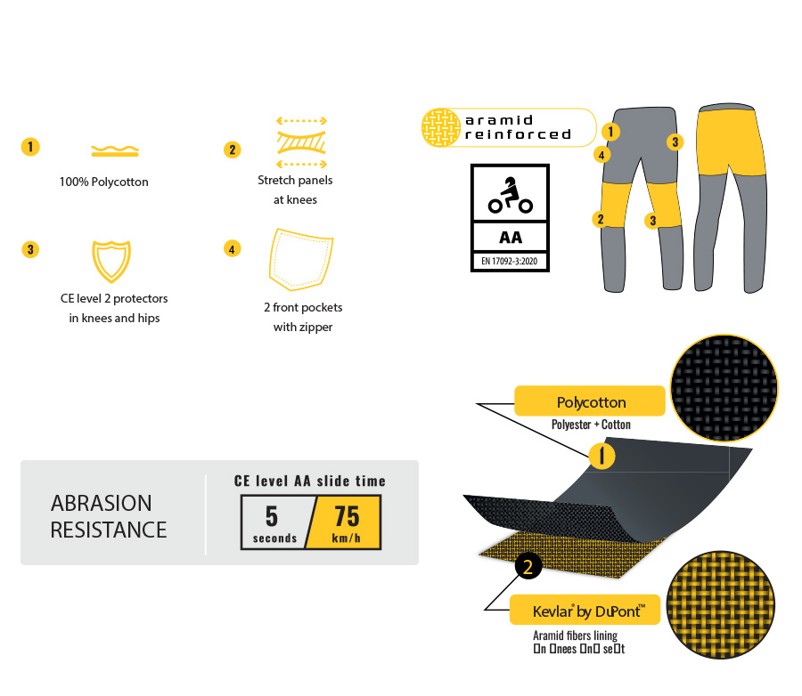 Trilobite Drible este o pereche de pantaloni de jogging, conceputi cu gandul la siguranta pentru motociclism. Acestia sunt prevazuti cu aramida pe sezut, solduri si genunchi, precum si protectii integrate pentru solduri si genunchi.
