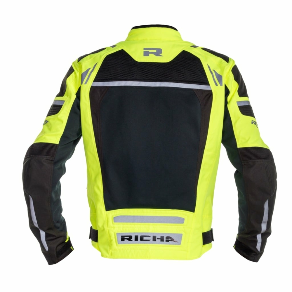 Geaca textil touring impermeabila Richa Airstorm Richa Airstorm Wp este o geaca de vara prevazuta cu membrana impermeabila detasabila, fiind astfel o geaca ideala pentru vremea capricioasa din timpul verii. Panoruile din plasa dispuse pe piept si pe partea superioara a spatelui ofera un flux de aer optim pentru a mentine o buna temperatura a corpului in zilele calduroase. La nivelul coatelor au fost prevazute panouri tip , œacordeon, pentru un plus de mobilitate. Gulerul este prevazut cu sistem de inchidere Smart T, finisajul fiind facut cu neopren moale pentur un plus de confort. Clapeta de la nivelul gatului fixeaza gulerul gecii si fermoarul. Richa Airstorm este prevazuta cu 2 buzunare exterioare si 3 buzunare interioare. Pentru un plus de confort si siguranta, geaca este prevazuta cu un fermoar scurt pentru conectarea pantalonilor Richa. Impermeabilitatea este oferita de membrana detasabila Aquashell LTD de 10.000 mm. La coate si umeri sunt incluse protectiile D3O nivel 1. La nivelul spatelui si pieptului se pot adauga optional protectii D3O (disponibile separat). Caracteristici: Sistem Airvent (AVS): Ventilatie fixa in zonele cheie; Panouri elastice acordeon la coate; Captuseala din plasa moale; Guler finisat din neopren moale, sistem de inchidere a gulerului smar t; 2 buzunare exterioare si 3 buzunare interioare Clapeta de la nivelul gatului ce fixeaza gulerul gecii si fermoarul; Cusaturi de siguranta in zonele cu risc ridicat; Fermoar de conectare (scurt); Membrana detasabila Aquashell LTD de 10.000 mm; Protectie D3O reg; nivel1 la umeri si coate (se pot schimba cu D3O Ghost nivel2); Compatibila cu protectia pentru spate D3O reg; (se pot schimba cu D3O Viper nivel 1 sau nivel 2); Pregatire pentru protectiile toracice din doua piese D3O reg; nivel1 (disponibile separat).