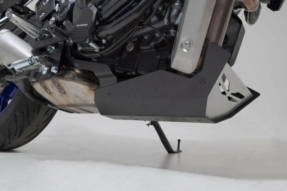 Scut motor frontal Yamaha MT-07 (20-24), Tracer 7, XSR700 XT (21-) Spoilerul frontal SW-MOTECH, adaptat designului motocicletei, ofera protectie fiabila impotriva cioburilor de piatra si a contactului neintentionat cu solul. Vopsirea cu pulbere a suprafetei este extrem de durabila si protejeaza permanent impotriva coroziunii. Protectia extrem de rezistenta a partii inferioare poate fi montata usor pe punctele de fixare originale, folosind prinderile personalizate din otel incluse, fara a fi necesar sa se sape sau sa se sudeze. Protectie a partii inferioare impotriva cioburilor de piatra si a coliziunilor Instalare fiabila si usoara pe punctele de fixare originale Nu este necesara gaurirea sau sudarea Suprafata vopsita cu pulbere Inclus in livrare 1 x Spoiler frontal Instructiuni de montaj Material de montaj Detalii Material: Aluminiu Aluminiu Suprafata: vopsita cu pulbere efect catifelat Culoare: negru argintiu Greutate totala: aprox. 2,0 kg aprox. 4,4 lb