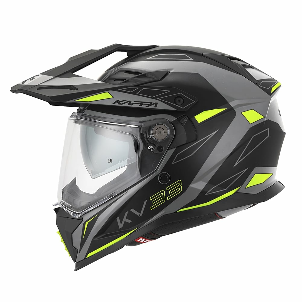 Casca moto enduro , touring Kappa KV33 Enduro Basic Casca Kappa KV33 Enduro Basic este un model full-face versatil, ideal pentru enduro sau touring, cu protectie solida din termoplastic si viziera pregatita pentru Pinlock. Ofera confort sporit prin interior detasabil, ochelari de soare integrati si ventilatie eficienta, completata de un cozoroc util atat pe drum, cat si off-road. Protectie completa si constructie durabila Kappa KV33 Enduro Basic este o casca full-face proiectata pentru motociclistii care combina traseele de enduro cu cele de enduro-touring, oferind protectie avansata, confort si functionalitate intr-o constructie moderna. Modelul se remarca prin versatilitatea ridicata, fiind ideal atat pentru aventuri off-road, cat si pentru drumuri lungi pe asfalt.Cozorocul este un element important pentru utilizarea dual-purpose: pe touring protejeaza ochii de razele soarelui, iar in off-road te apara de crengi, pietricele si alte obstacole intalnite pe trasee enduro. Caracteristici principale: Fabricat din termoplastic de inalta rezistenta Carcasa fabricata in 2 marimi Cozoroc (peak) Ochelari de soare retractabili, integrati in interiorul castii Interiorul este complet detasabil si se poate spala Inchidere micrometrica Viziera este pregatita pentru Pinlock reg; Max Vision DKS630 (pinlock-ul nu este inclus) Prize de aer superioare Sistem de ventilatie pe barbie Greutate 1650+ -50 gr Norma de siguranta ECE 22.06 Marimi disponibile : 54 XS , 56 S , 58 M , 60 L , 61 XL , 63 XXL