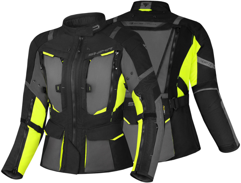 Geaca SHIMA Hero 2.0 Lady potrivita pentru touring/adventure, vine echipata cu o membrana termica si una impermeabila (NextDry™) ambele fiind detasabile, protectii nivel 2 pentru spate, umeri si coate si elemente reflectorizante pentru siguranta.