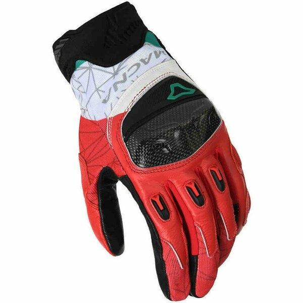 Manusile moto de vara Macna Rocco sunt confectionate din piele de caprina foarte moale, avand o curea tip velcro la nivelul incheieturii pentru o inchidere sigura si o buna potrivire. Protectiile Armax RISC pentru articulatii si palma, precum si insertiile externe semi-dure de pe degete, asigura un nivel ridicat de protectie. Un strat suplimentar de tesatura conductiva de pe degetul aratator permite utilizarea dispozitivelor cu ecran tactil, fara a fi nevoie sa scoateti manusa.