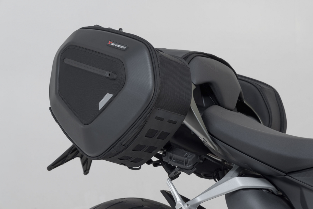 Set genti laterale PRO BLAZE SW-MOTECH a fabricat acest set de genti laterale PRO BLAZE cu brate de sustinere adecvate pentru motocicletel si din material usor si dimensional stabil EVA. Husa, confectionata din nailon 1680D deosebit de rezistent la UV, protejeaza bagajele de apa si de praf. Dezvoltate special pentru motociclete sportive, gentile laterale au un efect minim asupra caracteristicilor de conducere. Atunci cand calatoriti fara bagaje, bratele de sustinere detasabile pot fi detasate printr-un simplu pas, lasand in urma doar suporturi discrete pe motocicleta. Bratele de sustinere detasabile dezvoltate specific pentru fiecare motocicleta, un sistem puternic de prindere tip carlig si bucla si o curea de siguranta suplimentara cu inchidere tip catarama asigura cea mai buna prindere si impiedica gentile sa se balanseze sau sa falfaie - chiar si la viteze mari. Include: 2 x Genti laterale PRO BLAZE 2 x Brate detasabile BLAZE 2 x Genti interioare impermeabile 1 x Folie adeziva de protectie Instructiuni de montare Material de montare Detalii Material: Nailon balistic 1680D EVA Culoare: negru antracit Greutate totala: aprox. 5,4 kg Volum total: 30,0-40,0 litri