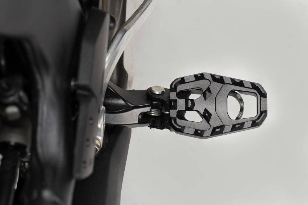 Suprafata de contact semnificativ mai mare si o prindere mai sigura - SW-MOTECH stie ce vor motociclistii si fanii offroad si a dezvoltat o extensie a scaritei exclusiv pentru noul Africa Twin. Creste suprafata de contact la 59 x 86 mm (scarita original Honda: 40 x 65 mm) Profilul frezat cu CNC cu margini rotunjite protejeaza talpile cizmei si ofera o aderenta suplimentara in acelasi timp Aspect extrem de robust si de inalta calitate din aluminiului culoare negru anodizat cu logo argintiu gravat cu laser Montare usoara pe suportul de scarite original cu un singur surub Dezvoltat exclusiv pentru Honda CRF1000L Africa Twin Include: 1 extensi scarite Instructiuni de montaj Materiale pentru montaj Detalii: Material: Aluminiu suprafata vopsita negru