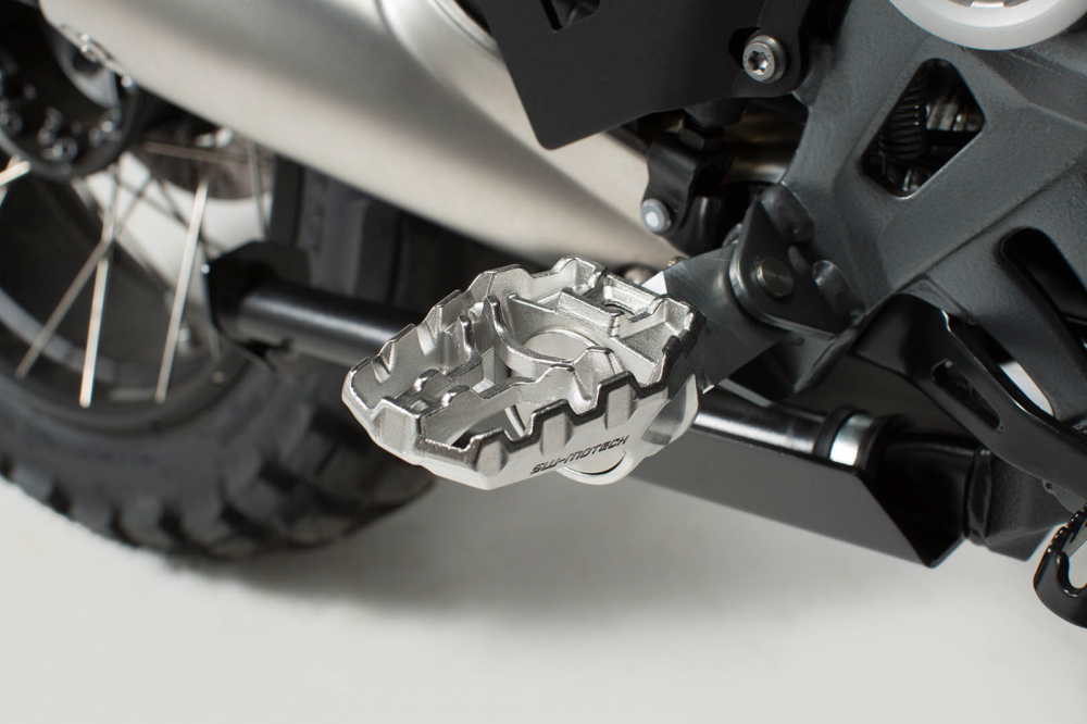 Scarita EVO Sw-motech imbunatateste stabilitatea pentru picioare, ofera confort si tractiune sub o varietate de conditii. Pivotabila, cu 36 de setari, reglarea individuala pentru inaltime,pozitie si unghi, garanteaza cea mai buna ergonomie posibila. Instalare usoara cu balama de montare (inclus in Kit scarita EVO pentru motociclete specifice) pe scarita originala. 36 setari de pozitie (fata,spate,sus,jos,unghi) Conexiune puternica Marcaje pentru ajustarea simetrica in ambele parti Profil cu margini rotunjite asigura o aderenta excelenta Insertie de cauciuc detasabila (cca. 8 x 5 cm) pentru sprijin si confort Material: electrochimic, rezistent la coroziune din otel inoxidabil Culoare: argintiu su insertie de cauciuc negru Include: Scarita EVO pentru partea stanga si dreapta 2x adaptoare specifice motocicletei Materiale de montare instructiuni de montare Detali: Material: Otel inoxidabil cauciuc Culoare: Argintiu Negru