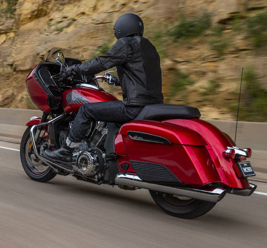 Standard Equipment Electronic Cruise Control • Full LED Lighting • Long-Haul Seat • ABS • Keyless Ignition • Weather-Proof Saddlebags (over 18 gallons of storage) Race-Spec Radially-Mounted Brembo® Brakes • New Performance Touring Metzeler® Cruisetec® Tires • Adjustable Windscreen with Nearly 3″ of Travel • Adjustable Air Vents • Three Ride Modes – Rain, Standard and Sport – adjust the Challenger’s throttle mapping to create one motorcycle with three distinct performance personalities. • Ride Command with Apple CarPlay integration; 12CV Charging port