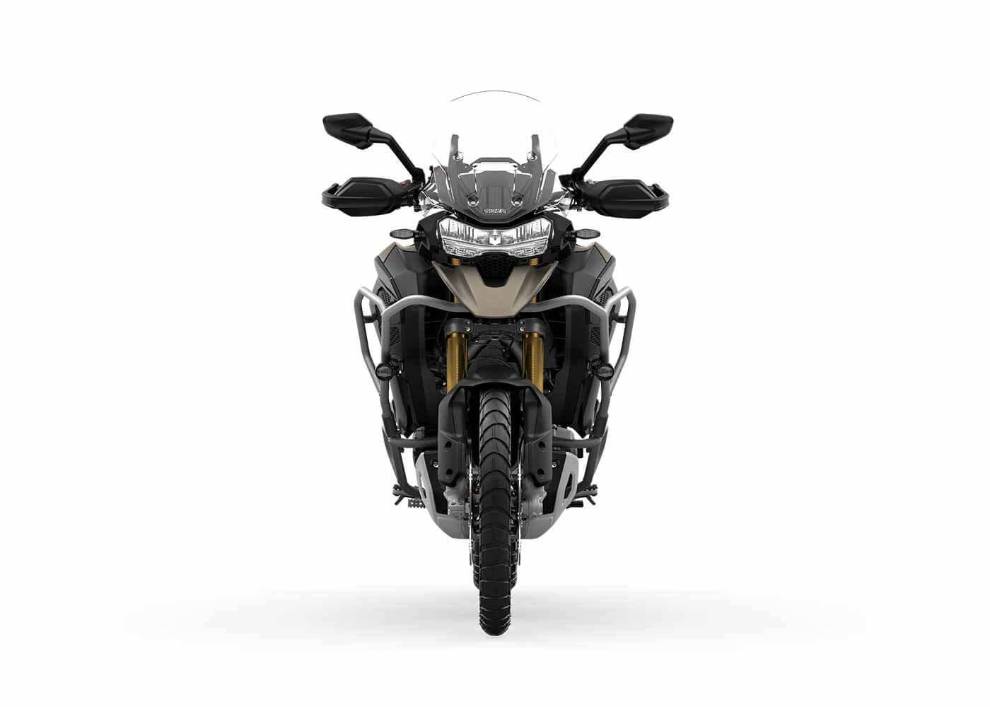 ALTE DETALII: motor cu tehnologie T-Plane, basculă Tri-Link, sistem control al tracțiunii și sistem ABS optimizate pentru viraje, unitate IMU, sistem de control al vitezei de croazieră Cruise Control, sistemul de schimbare a treptelor Triumph Shift Assist, sistem de asistență pentru pornirea din rampă Hill Hold Control, sistem de monitorizare a presiunii din pneuri Tyre Pressure Monitoring System, sistem Adaptive Cornering Lighting pentru vizibilitate sporită în viraje, suspensii premium semi-active Showa, sistem franare Brembo, ambreiaj asistat cu alunecare controlată, 6 Riding Modes, jante cu spițe, anvelope tubeless, șa încălzită și reglabilă pe înălțime 875-895 mm, parbiz reglabil, bord multi-functional cu afisaj TFT color 7 inch cu My Triumph Connectivity System, faruri și iluminare completă cu tehnologie LED, proiectoare auxiliare cu LED, bare de protecție rezervor de combustibil pornire fără cheie, protecții mâini, priză USB, cric central, mânere încălzite, scut de protecție baie de ulei, bare de protecție motor