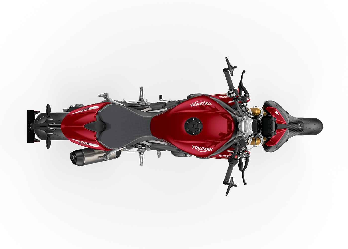 ALTE DETALII:sistem ABS, accelerație Ride-by-Wire, ambreiaj Slip-Assist, controlul tracțiunii TTC decuplabil, Riding Modes cu 5 moduri selectabile, frâne racing Brembo, suspensii premium Ohlins, furcă Ohlins NIX30, amortizor spate Ohlins TTX36, bord multi-functional cu afisaj TFT de 5 inchi, Shift Assist, sistemul My Triumph Connectivity pentru conectarea cu smartphone-ul, pornire fără cheie, sistem de iluminat LED