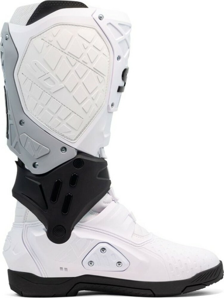 Sidi Crossair X oferă tot sprijinul, controlul și protecția de care ai nevoie, fără greutatea suplimentară. Cizmele Crossair X livrează un nivel remarcabil de siguranță, cu protecții de impact de înaltă densitate care acoperă întreaga cizmă într-o structură ușoară și flexibilă, concepută pentru performanță maximă. Talpa, realizată din compusul Materiis®, este dezvoltată pentru control și durabilitate la nivel de campionat Supercross: rezultatul este o aderență totală fără sfârșit, pentru a aborda orice circuit. În interior, exoscheletul din fibră de sticlă oferă suport în timpul aterizării după sărituri, iar sistemul anti-hiper-flexie în 3 puncte protejează împotriva mișcărilor periculoase.