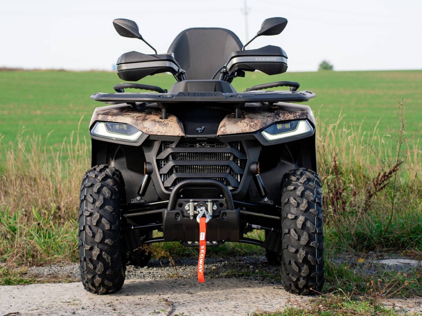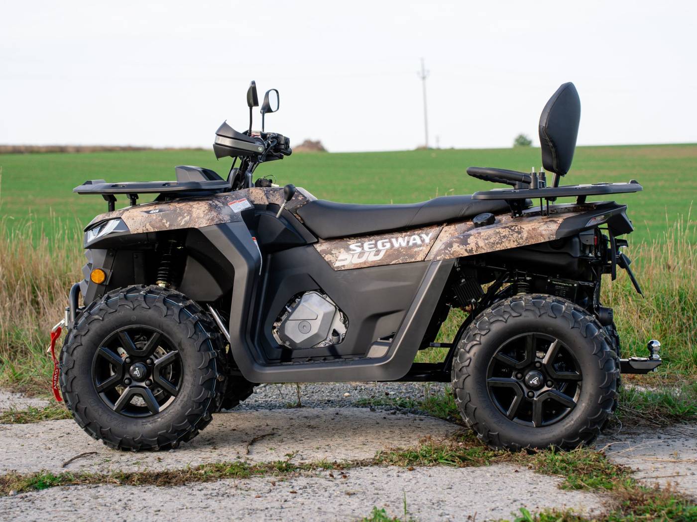 Dotări Troliu electric de 1.134 kg, cârlig de remorcare omologat, diferențial blocabil față și spate, scaun cu spătar și mânere de susținere pentru pasager, oglinzi, suport bagaje față/spate, apărători pentru mâini, bară de protecție față, scărițe antiderapante