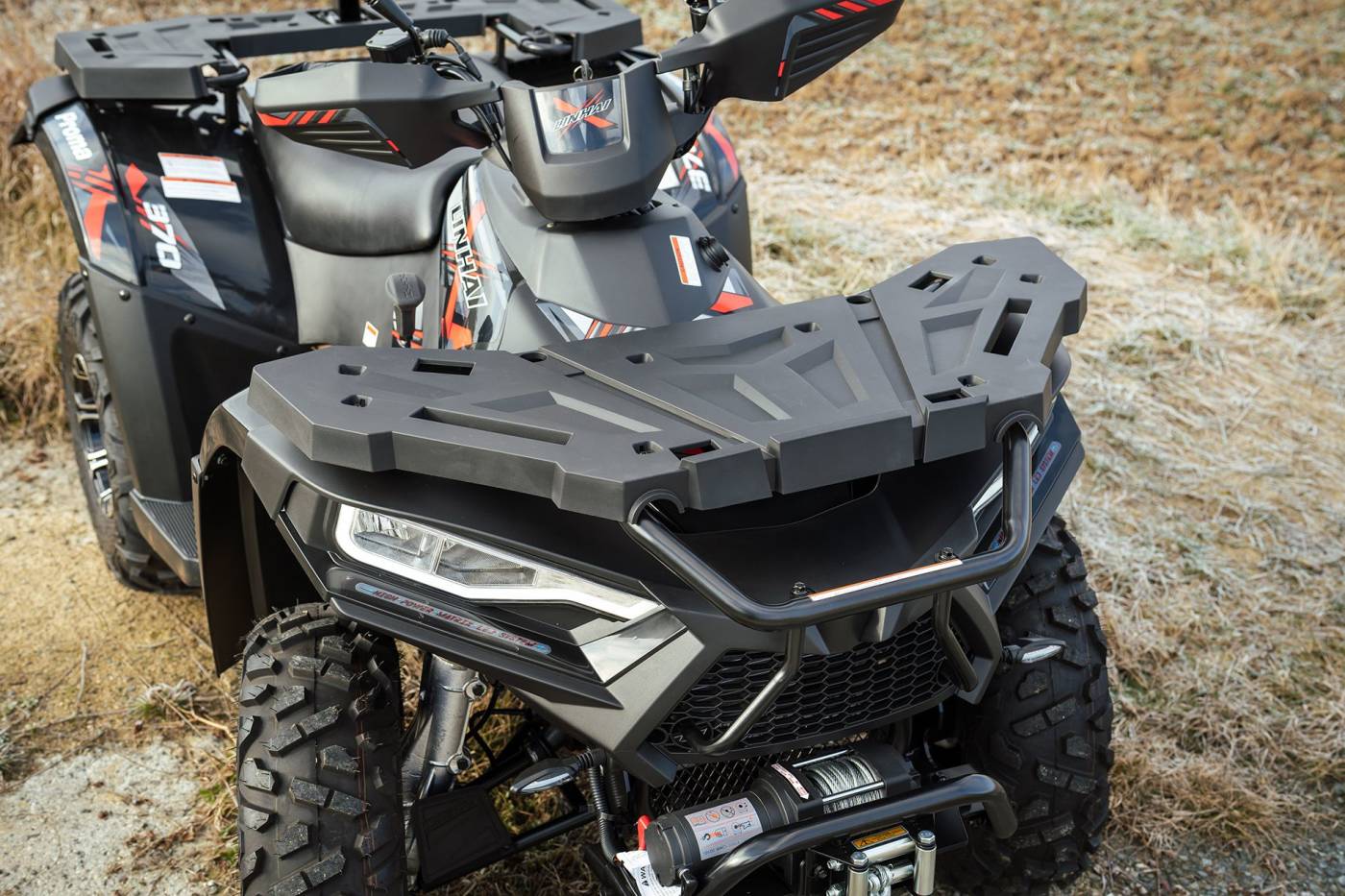 Dotări Cârlig de remorcare omologat, troliu electric de 1360 kg cu telecomandă, apărători pentru mâini, bară de protecție față/spate, suporturi pentru bagaje față/spate, scaun cu spătar pentru pasager, priză tip brichetă în consolă, faruri LED-Matrix