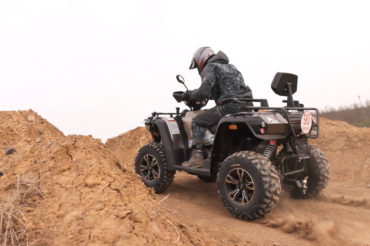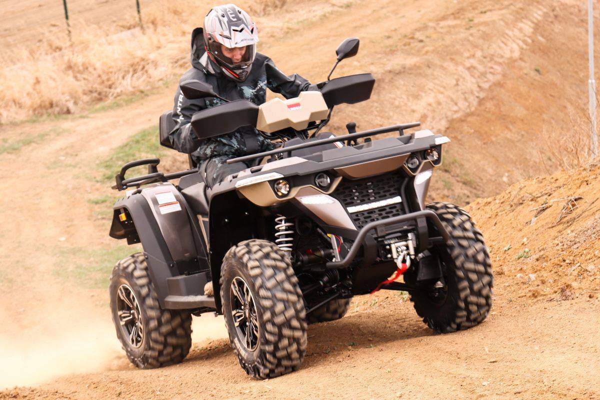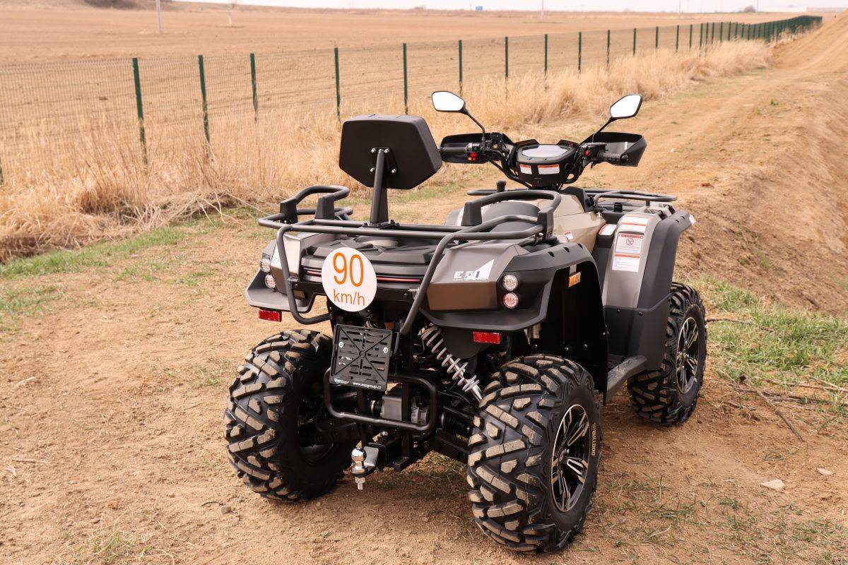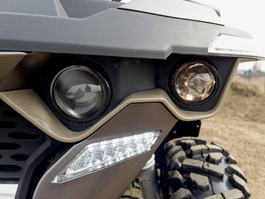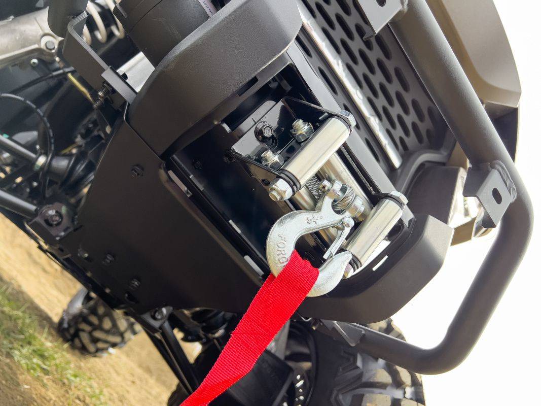 Dotări Cârlig de remorcare omologat, troliu electric de 1360 kg cu telecomandă, apărători pentru mâini, bară de protecție față, portbagaj față/spate din oțel, scaun cu spătar și scărițe pentru pasager, port USB, faruri LED
