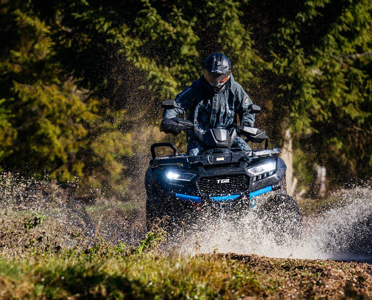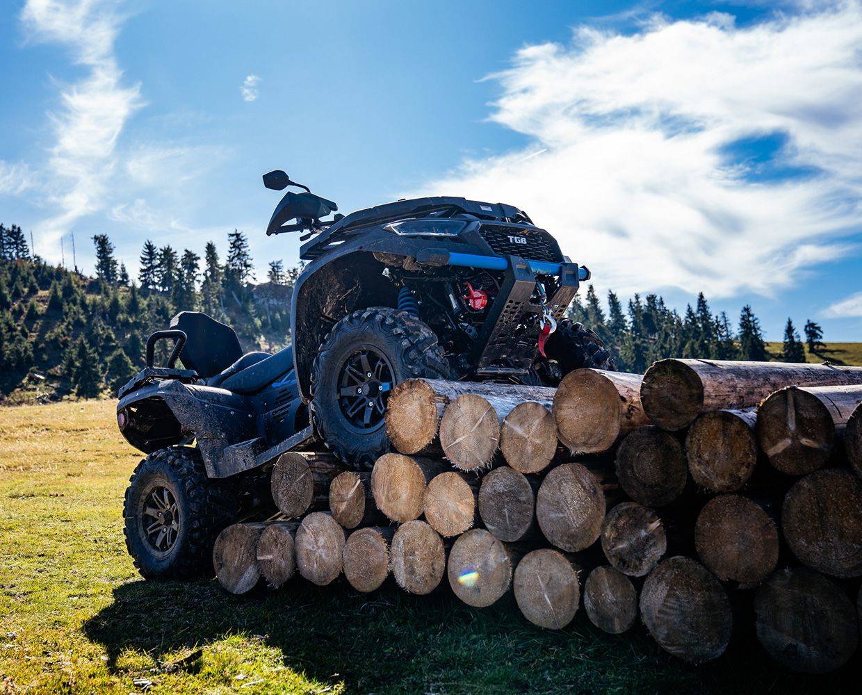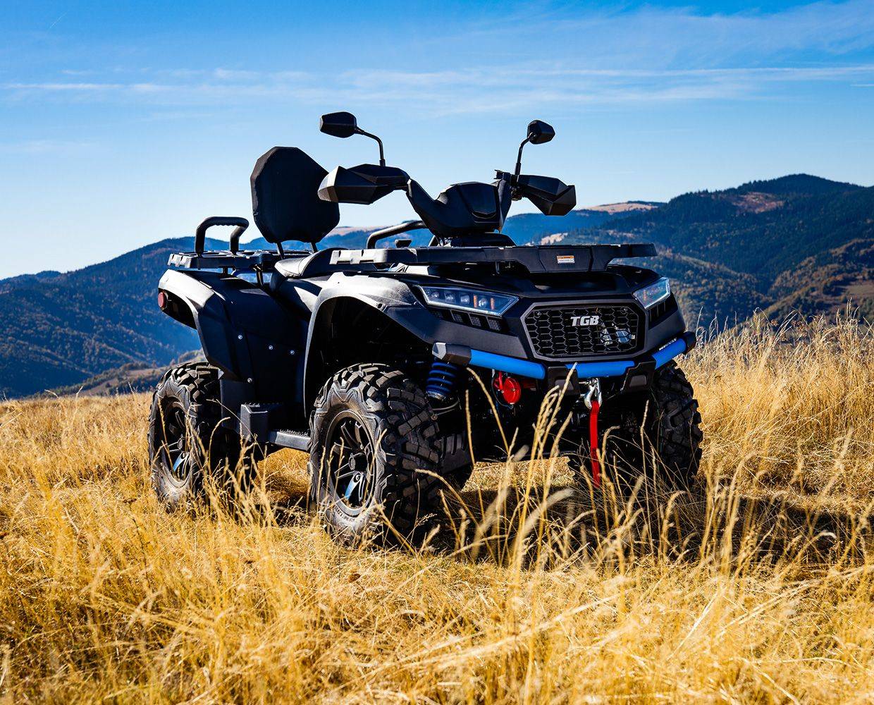 Dotări Cârlig de remorcare omologat, troliu electric de 1360 kg, apărători pentru mâini, bară de protecție față din oțel, suporturi pentru bagaje față/spate, scaun cu mânere și spătar pentru pasager, priză tip brichetă în consolă, elemente coloristice noi, faruri LED